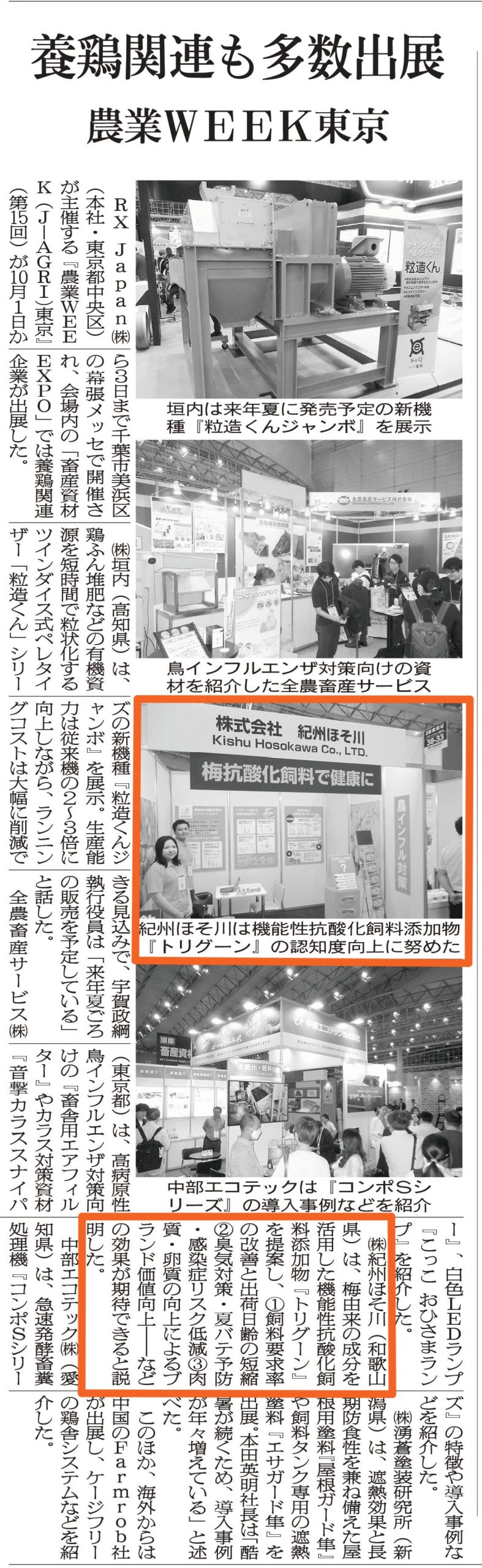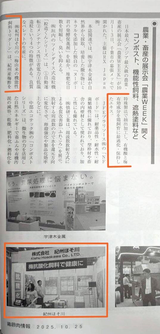 2025年10月に幕張メッセで開催された「農業WEEK東京」に、当社の機能性飼料「トリグーン」を初めて出展いたしました。